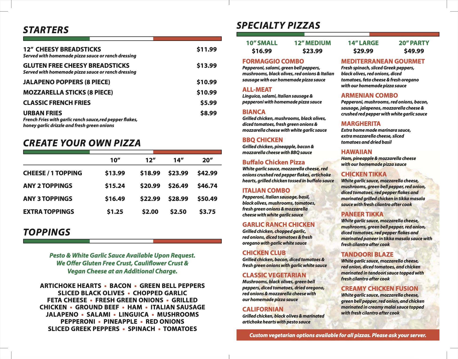 Town Center Menu